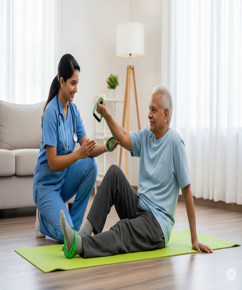 Certified physiotherapists offering home visits for pain relief, mobility improvement, and rehabilitation.